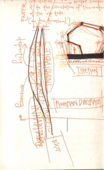 These sketches document a range of investigations from site-scale relationships to material-scale detail. Early drawings explore the alignment of the water taxi terminal within the Tidal Basin and its spatial relationship to the Lincoln and Jefferson Memorials, establishing pathways and orientation within the larger memorial landscape. Subsequent sketches examine circulation, sectional flow, and the sequencing of spaces through the terminal as visitors move from land to water. The studies conclude with detailed explorations of material connections, translating the project’s shipbuilding-inspired sectional logic into specific structural and tectonic relationships.
